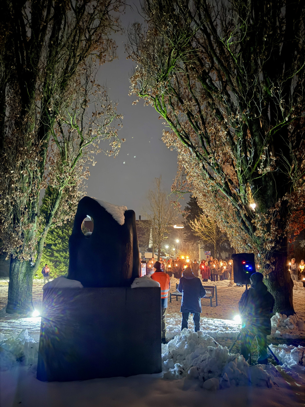 Etwas über 100 Teilnehmer trafen sich gestern Abend zum Gedenken an die Opfer des Holocaust in der Spitalkirche in Hersbruck.Den ökumenischen Gottesdienst gestalteten die Ev.-Luth. Pfarrei Hersbruck-Sittenbachtal, die Röm.-Kath. Pfarrei Mariä Geburt Hersbruck, die Ev.-Method. Kirche Hersbruck und die Griech.-Orthod.Metropolie von Deutschland. Immer am 27. Januar, dem Jahrestag der Befreiung des KZ Auschwitz, findet ein Gedenken und ein Schweigemarsch in Hersbruck statt. Gemeinsam organisiert mit dem Verein Dokumentationsstätte KZ Hersbruck e.V. marschieren die Teilnehmer von der Kirche zum Bocchetta-Denkmal "Ohne Namen" am ehemaligen KZ-Gelände. Der Gottesdienst stand unter dem Motto mitgenommen. Kernstück war eine Szenische Darstellung von Jugendlichen die sich um den Koffer des Ur-Opas handelte, der viele Geschichten erzählen könnte. Geschichten erzählen können leider immer weniger Zeitzeugen, diese sterben aus. Umso wichtiger ist das Erhalten der Geschichten und das Erinnern. Denn keiner weiß ob nicht irgendwann auch "wir wieder unter Bedrohung von außen diesen Marsch durchführen", so Martin Chmel in seinen Worten. Die musikalische Ausgestaltung übernahm "Noema". Die örtliche Polizei sorgte für gesperrte Straßen und die Sicherheit der Teilnehmer am Schweigemarsch.